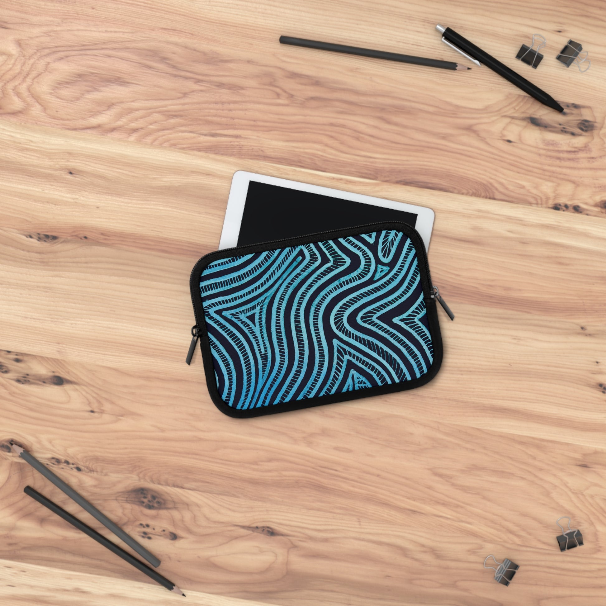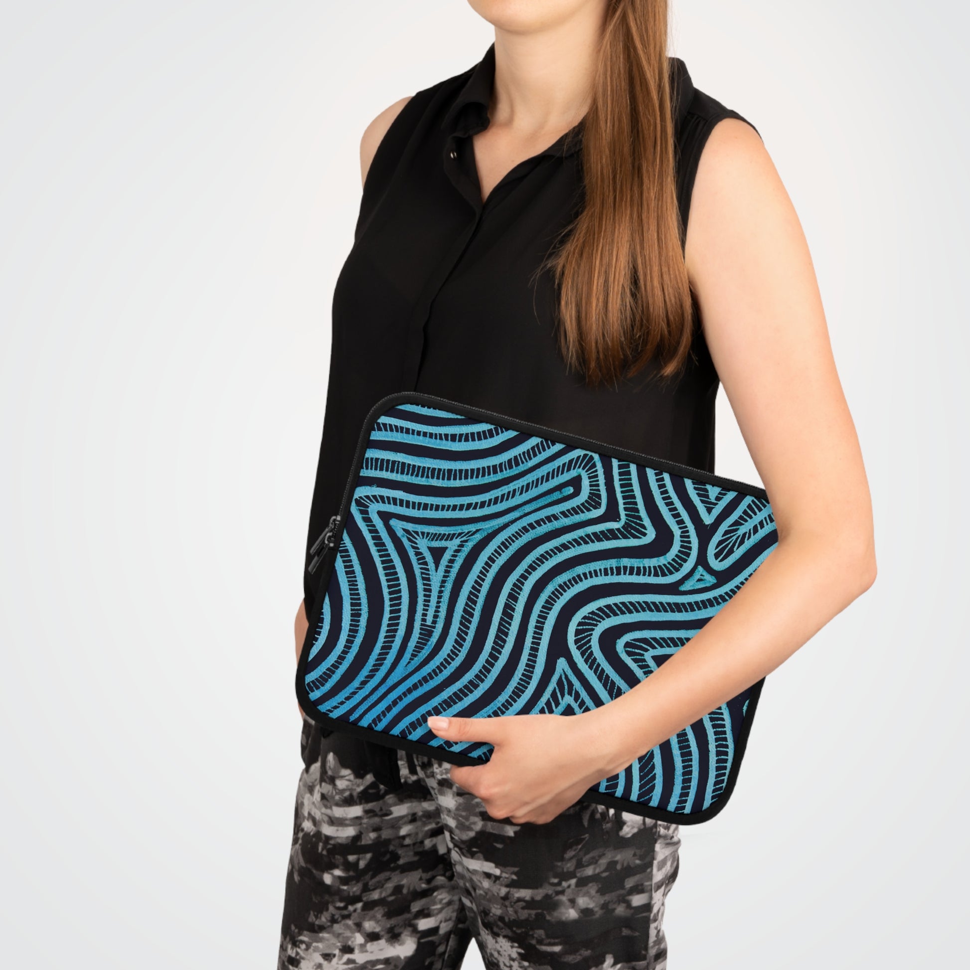 Deze stijlvolle laptophoes combineert functionaliteit met een artistieke